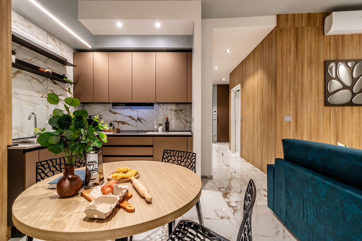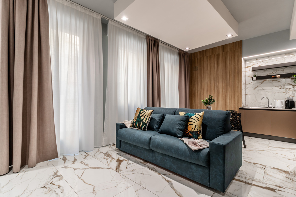 L’appartamento Gianni, con una superficie di 60 m², è composto da un ampio soggiorno con angolo cottura e divano letto, una spaziosa camera matrimoniale ed un bagno privato. È ideale per un massimo di 4 ospiti.